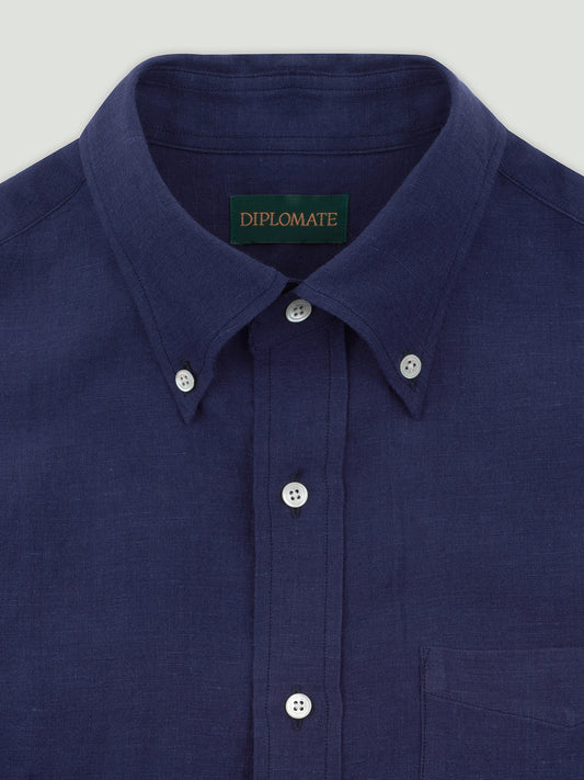 Diplomate Indigo Blue Linen Button-Down Shirt