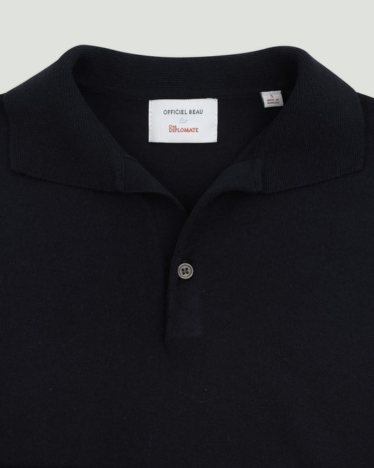 Officiel Beau for CHEZ Diplomate Open-Collar Knitted Polo Shirt in Super Dark Navy