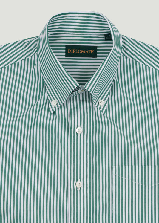 Shirt Button Down Broad Cloth Stripe Green