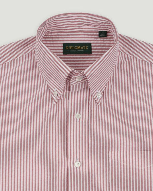 Diplomate Red Stripe Japanese Seersucker Button Down Shirt