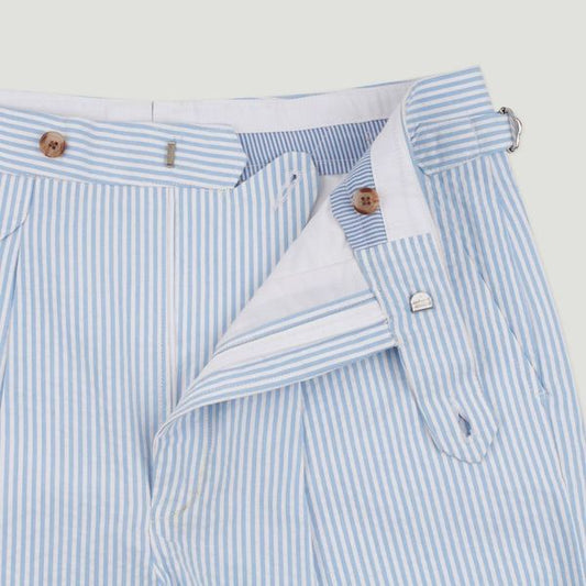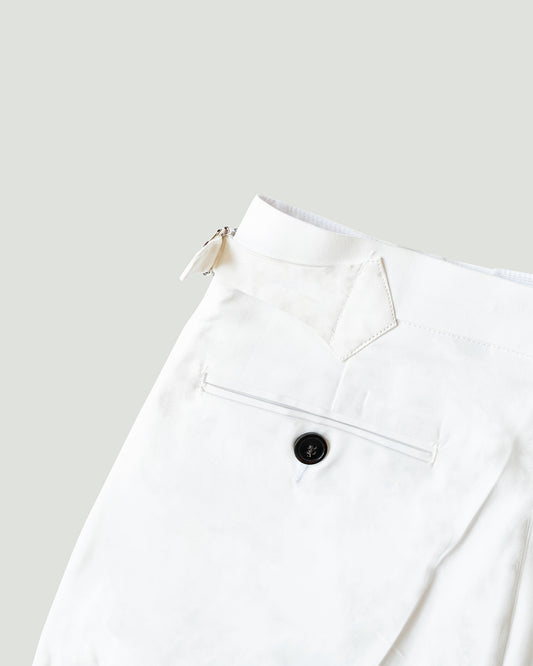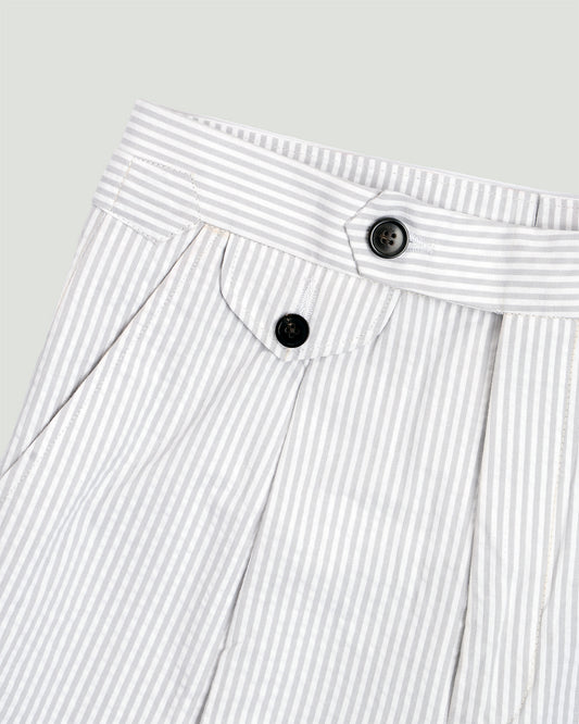 Beige Cotton-Linen Double Forward Pleated Shorts