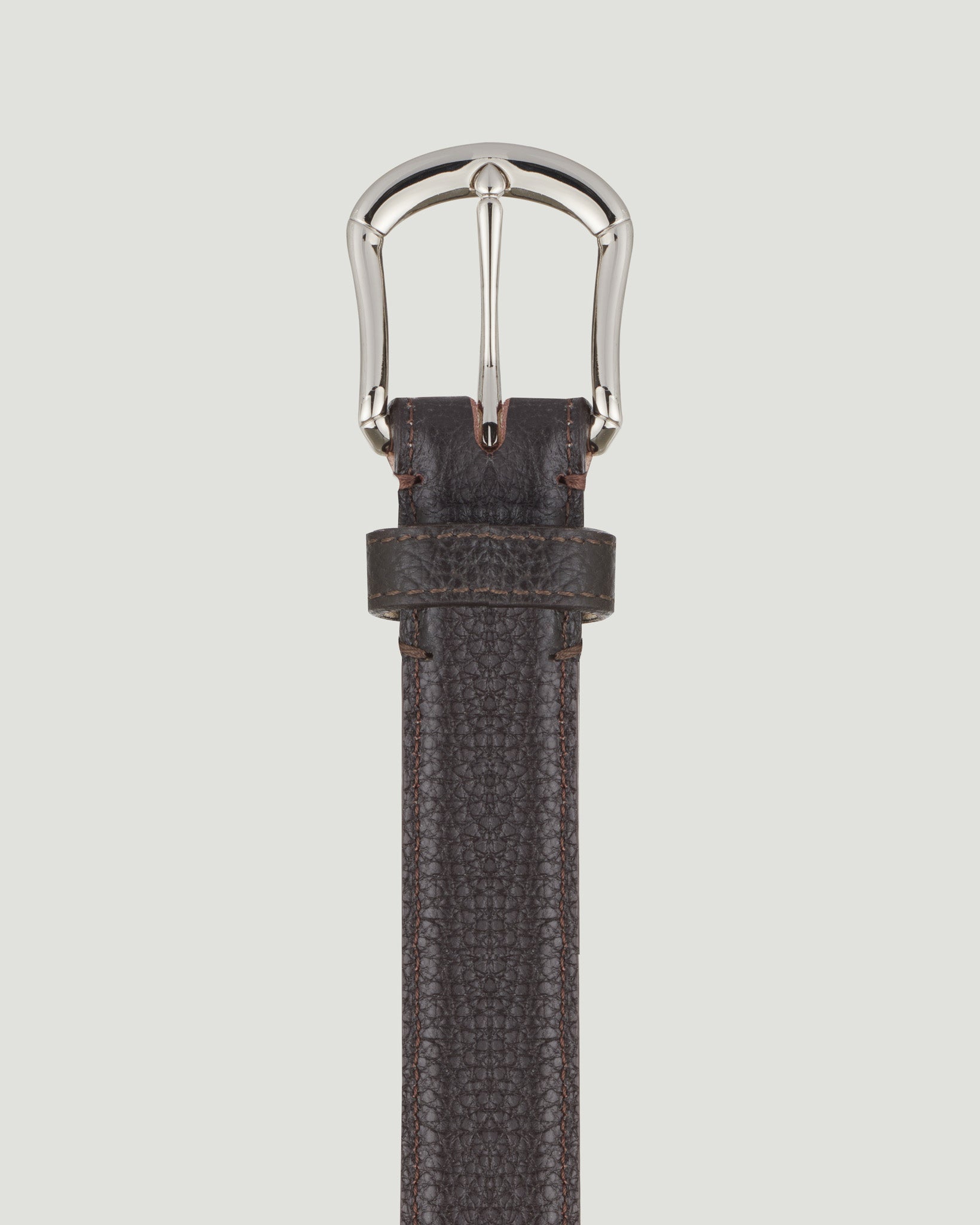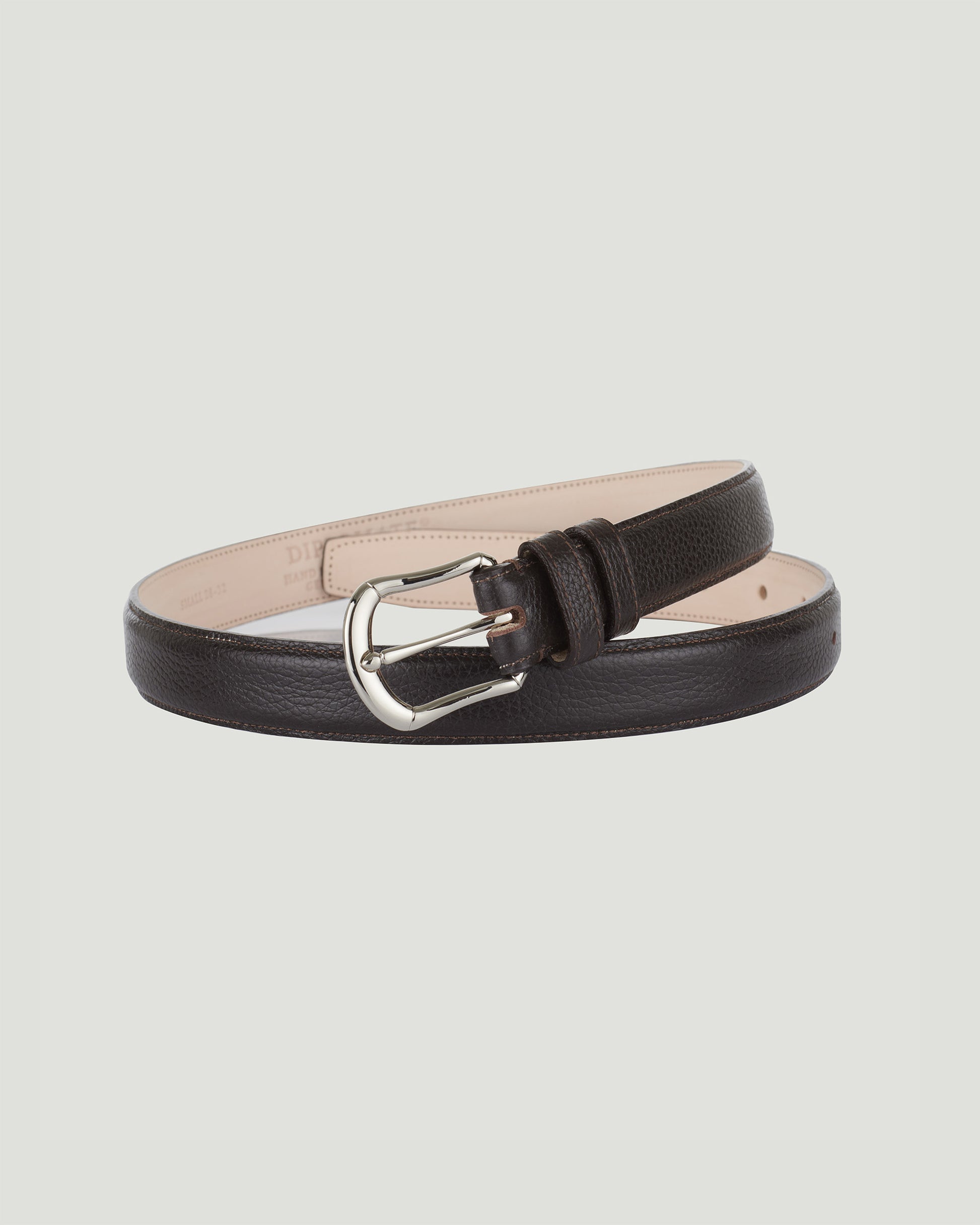 A returning customer favorite. The dark brown grained leather belt with silver skeleton buckle is made from full grain leather with natural lining and hand finished edges. Crafted to age well and last.